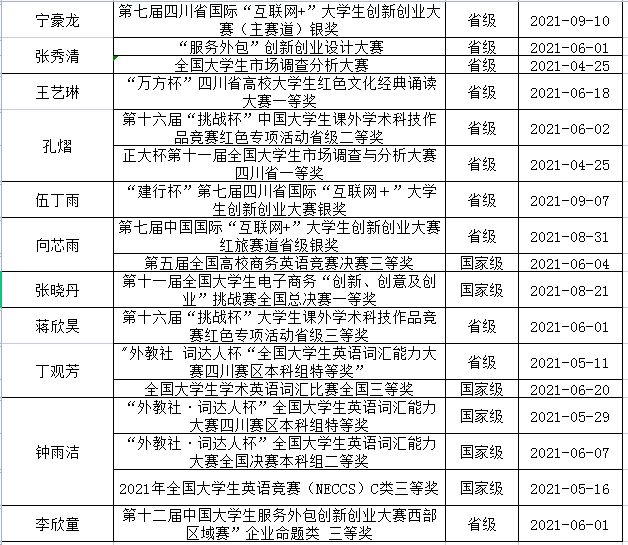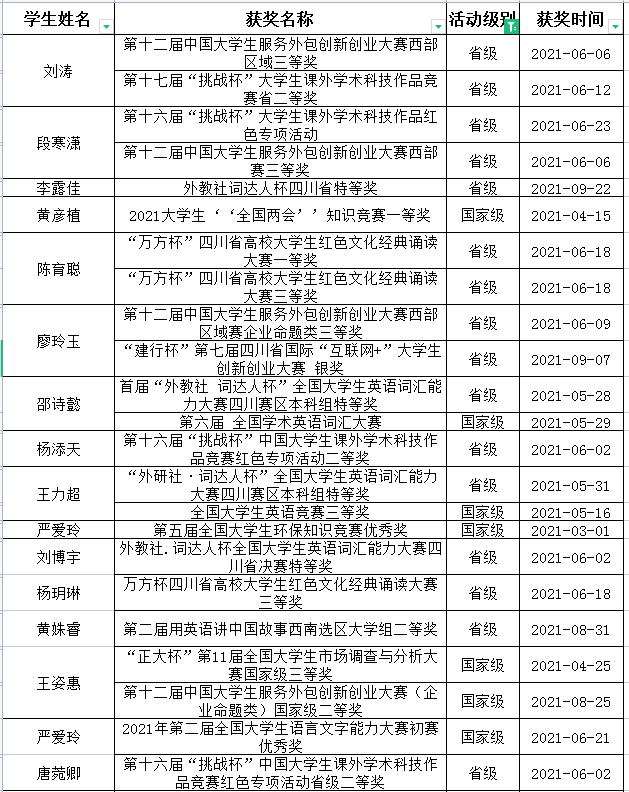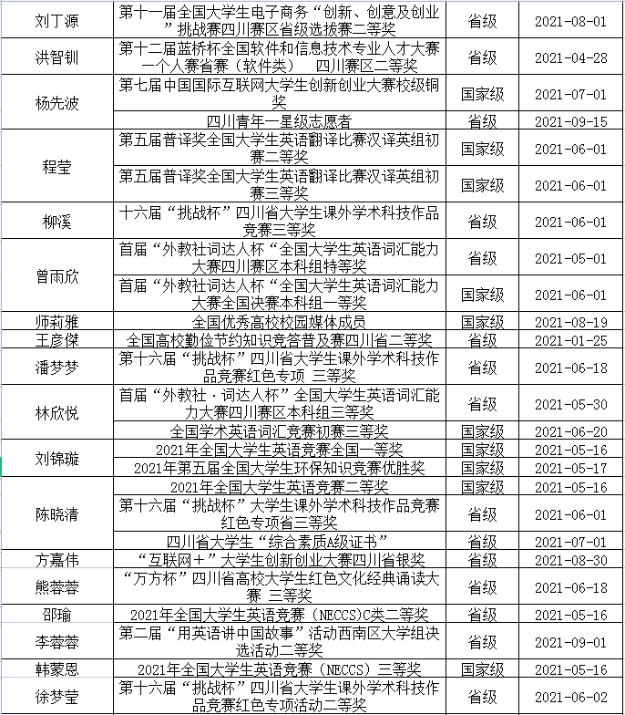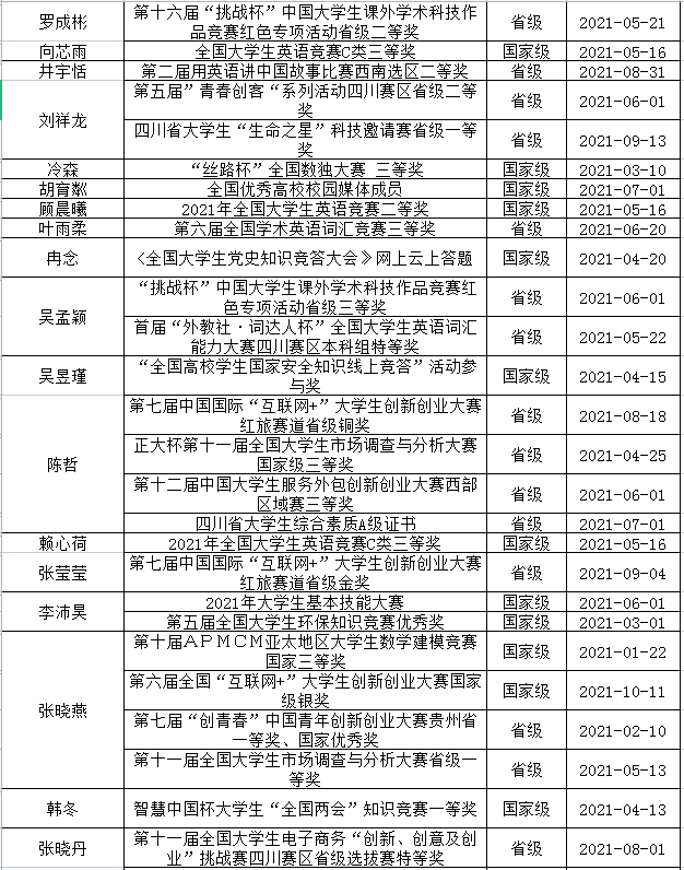 二、学生文体比赛、社会实践及科研竞赛获奖情况