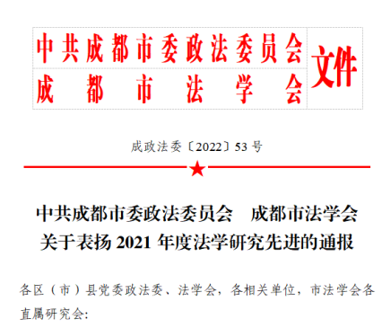 获成都市2021年度法学研究先进单位荣誉称号,蜜桃视频