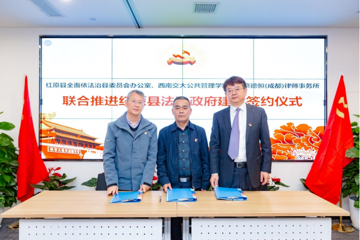 、红原县全面依法治县办和北京德恒(成都)律师事务现场签署《建立依法行政咨询研究联合工作机制协议》。