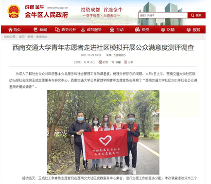 2019年起,为深入开展国家人口老龄化国情教育,引导青年学生弘扬孝亲敬老传统,学院开展了一系列以服务空巢、高龄老人等为内容的志愿实践活动,坚持每周定时送学上门,三年来服务老人600余人次,得到了校内外各社区的认可,形成了“晚晴驿站”社区为老志愿品牌服务项目。