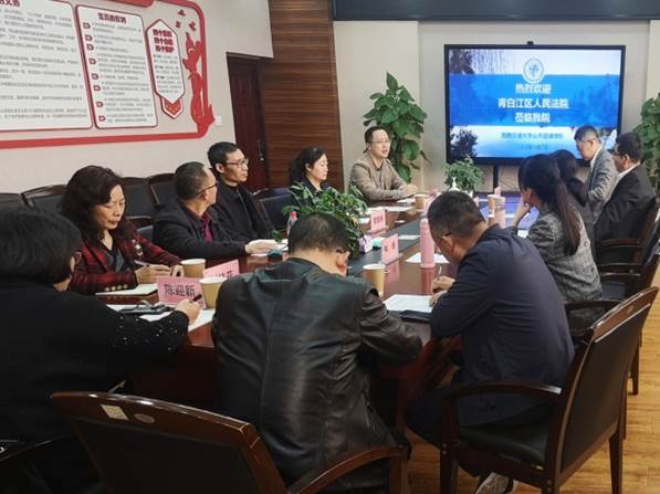 开展合作共建项目,并感谢校研究生院对学院的关心、帮助,表示将落实好校领导、研究生院的指示,在法治实践、管理优化、学生实习、校外导师、庭审进校园等多方面积极推进与青白江区人民法院的实质性、内涵式合作,积极履行部属高校服务驻地经济发展、助力法治建设的社会责任,实现院校共建共享共赢。