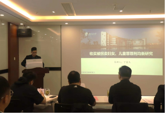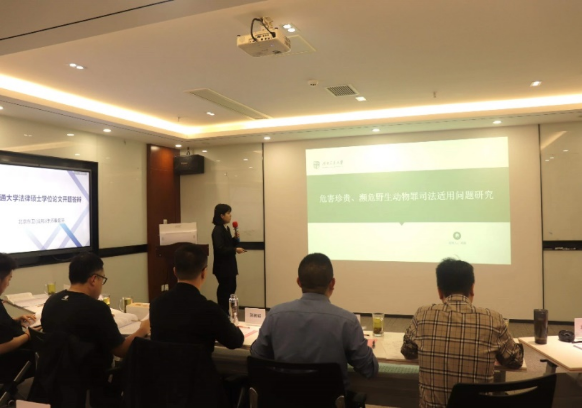 在协办单位、律师事务所主任简短致欢迎词后,研究生导师作选题背景介绍,随后,法律硕士研究生丁富杰就《收买被拐卖妇女儿童罪罪刑均衡研究》、邓悟就《全过程人民民主视域下基层立法联系点制度研究》、刘茜就《危害珍贵、濒危野生动物罪司法适用问题研究》分别作开题汇报,高校学者、实务专家逐一质询、提问并就研究对象、逻辑结构、论文大纲等内容予以细致指导。