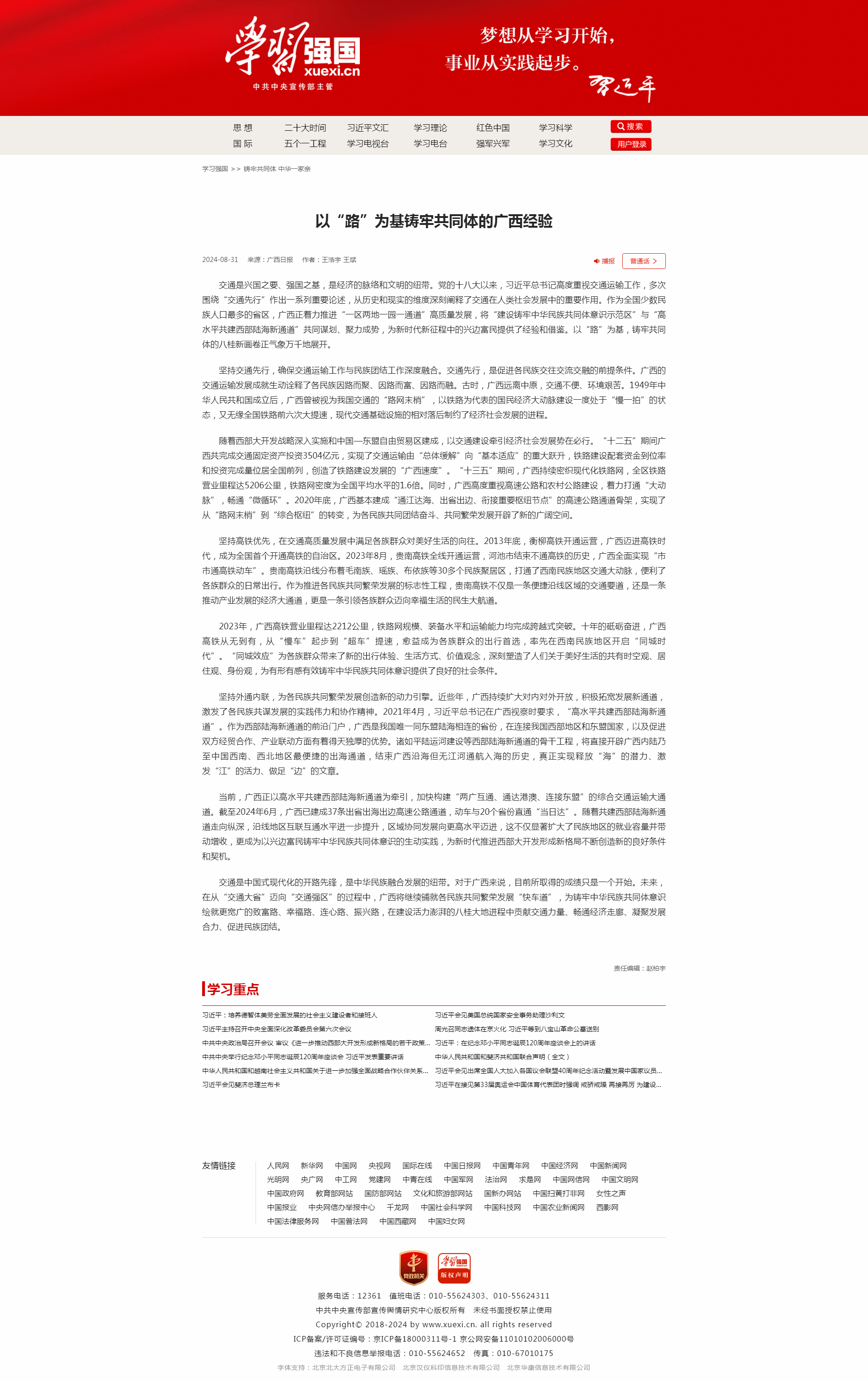 近日,蜜桃视频 王浩宇、王斌老师在《广西日报》(2024年8月31号)发表的评论文章《以“路”为基铸牢共同体的广西经验》,被“学习强国”全文转发,现阅读量已达170万,获得良好社会影响力。