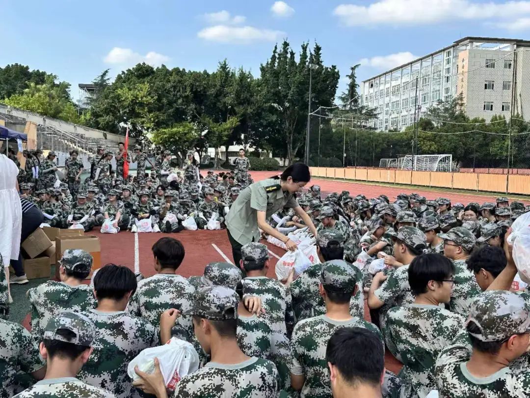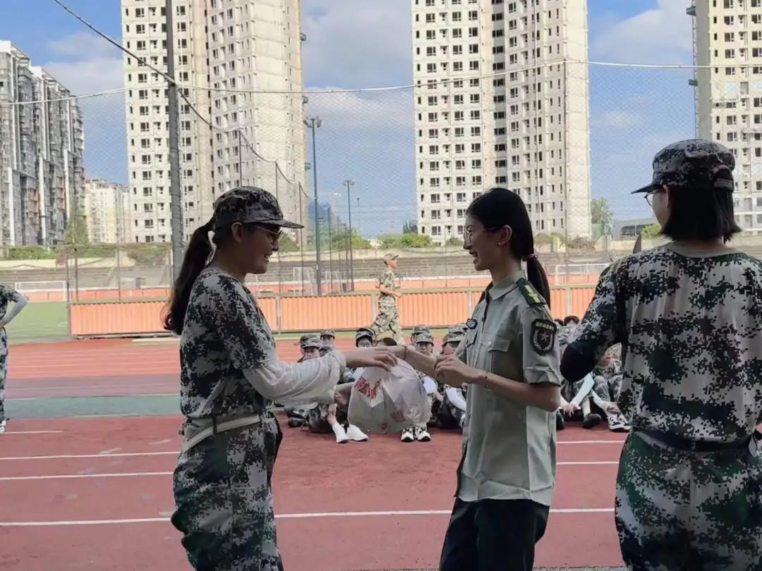 下午16时左右,学院学工组副组长、团委书记莫太林,研究生辅导员许楠、本科2022级辅导员王大海、本科2023级辅导员徐梦莹以及本科新生辅导员肖晨莹一行携着满含学院关怀的慰问物资来到训练场看望2024级的军训新生们。莫太林老师代表学院向参与军训的同学们表示亲切慰问,并给予了热情的鼓励。