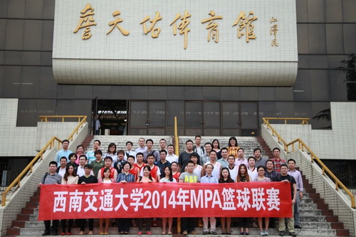2014年MPA篮球联赛在西南交大九里校区詹天佑体育馆如期举行开幕仪式。院长陈光、MPA主任雷叙川以及MPA中心的老师与部份MPA同学们出席了开幕仪式。开幕仪式上陈光院长热烈祝贺2014年MPA篮球联赛正式开赛,并希望篮球健儿们在赛场上英勇拼搏、赛出风格、赛出水平。2012级MPA成都班、2013级MPA成都班及MPA广州代表队的队长分别讲话,他们希望队员们在比赛中能秉持“友谊第一,比赛第二”的精神,发挥出最佳水平。