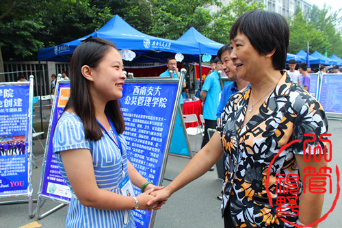 9月3日上午11点30分,西南交大党委书记顾利亚教授来到迎新现场视察迎新情况。当顾书记来到蜜桃视频