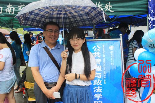 迎新工作全天,2015级辅导员王再锋老师和公共管理与政法学院分团委副书记张哲老师始终坚持在迎新工作点,学生工作组组长余小英老师也多次来到现场,他们给新生家长耐心讲解,同新生亲切交流。并在现场指导迎新工作的进行,使迎新工作开展的十分顺利。