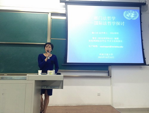 2015年10月12日晚7时30分,“国际法哲学前沿问题”学术讲座在犀浦校区X9205教室成功举办。本次研究生“创源大讲堂”嘉宾为秦小玲博士,秦博士为注册会计师、国际律师,曾任美国加州湾区华裔律师协会秘书长、《伯克利国际法》编辑、伯克利国际法学会学术交流部部长等职。讲座由邓君韬副教授主持。