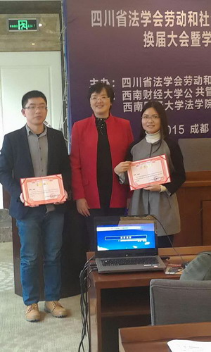法学硕士周璇与马克思主义学院政治学硕士熊茜合作的《专车司机与应用平台间劳动法律关系分析》、法学硕士柳翠与伏浩合作的《试析大学生实习期合法权益保护》分别均获论文评选三等奖及优秀奖。