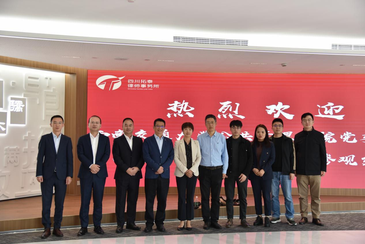 党委书记高凡教授、法学系康黎副教授、学工组副组长莫太林,四川拓泰律师事务所主任尹冬生、党支部书记、执行主任吴苛政、管委会副主任李孟松、管委会副主任聂巧、合伙人李培辉、合伙人黄礼、合伙人郭义靖等。