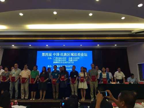 论坛主题为“维护民族团结和社会稳定的法治保障”,据悉,自3月起面向民族地区共征集论文636篇。民族区域法治论坛组委会对论文进行了评选,并报中国法学会审定,最终有49篇论文获奖,其中一等奖6篇,二等奖14篇,三等奖29篇。