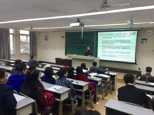 在九里校区逸夫馆4319教室召开全院教职工大会,传达学习全国高校思想政治工作会议精神,会议由学院党委书记王永杰主持。