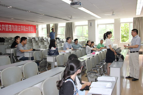 为贯彻落实2016年全国高校思想政治工作会议、2016年全国教育工作会议以及我校思想政治工作会议精神,培养青年教师爱岗敬业、立德树人、严谨治学的态度,提升青年教师的教学能力和业务水平,激励青年教师热情投身教学工作,公共管理与政法学院积极响应学校第八届青年教师教学竞赛通知精神,于7月6日下午14时在九里校区逸夫馆4210举办学院教学竞赛初赛。