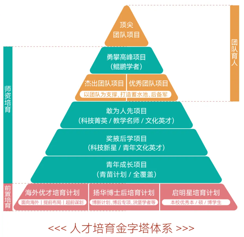 全新重塑“人才岗位金字塔体系”,以创新能力、质量、实效、贡献为导向,全新设置扬华教授、扬华学者、扬华讲座教授、扬华博士后、预—长聘制师资等5个序列16种人才师资岗位,促使各类人才“同台竞技”。系统优化“人才培育金字塔体系”,打造多类型多层级的人才培育支持体系,“一人一策”“一团一策”制定培育方案,多措并举提供全周期人才发展支持。