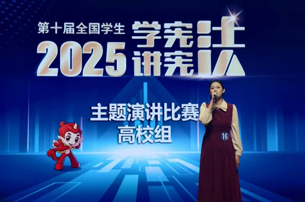 在素养竞赛中,谭亦婷同学展现了强大的竞技状态与深厚的法学素养。从限时答题环节的精准应答,到关键赛程的沉着思辨,她始终思路清晰、逻辑严谨,对宪法精神的深刻理解和对法律条文的熟练掌握,赢得了评委老师的高度认可。面对全省高校的顶尖选手,她凭借稳定发挥突破重围,最终以优异表现摘得高校组亚军。成绩的取得,离不开她数月以来为这场大赛所付出的所有辛苦努力,用汗水浇灌出的奖杯如此熠熠生辉。