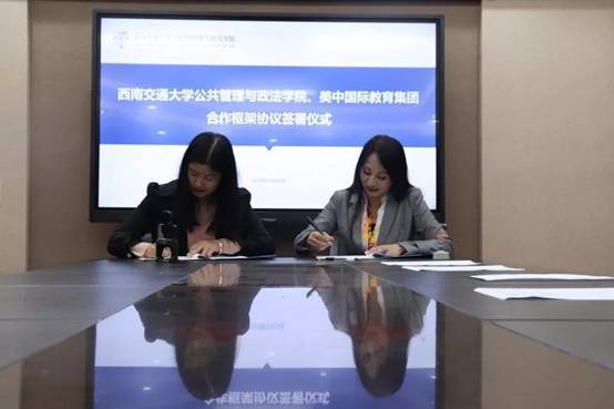 与美中国际教育集团于我校九里校区01313举行合作框架签署仪式。美中国际教育集团副总经理谭静女士、蜜桃视频