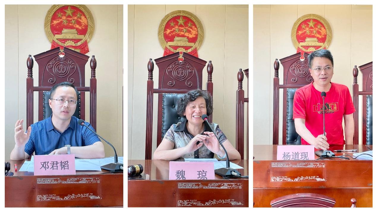 本次竞赛由公共管理与政法学院院长助理邓君韬副教授担任甲组评委主席,法学系主任魏琼副教授及四川省地方立法评估协作研究员杨道现博士共同担任甲组评委;在乙组赛场,公共管理与政法学院吴昱副教授担任评委主席,法学系颜诗树副教授、邓翠薇老师共同担任评委。同时,公共管理与政法学院电子政务实验中心赵巍老师也来到赛场指导工作,张荣荣老师全程参与了赛事的组织和实施。