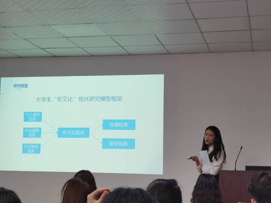 花儿与少年队的答辩题目是——文化的“调色板”VS生活的“紧箍咒,浅析“饭圈文化”对大学生的影响。他们通过爬取百度指数和微博评论进行背景的研究;在方案设计与实施阶段,利用了大数据文本分析,信度效度检验、交叉列联、单因素方差分析和因子分析等数据分析方法。他们调查得到,女性、低年级大学生是追星主力军,影视、音乐作品吸引度最高,多数大学生学习生活不受饭圈影响,理性消费观占据主体地位,大学生群体普遍持消极态度积极作用易被忽视。最后提出大学生要平衡学习生活与追星的尺度、合理规划追星支出、树立正确的追星观念;其他主体要加强网络媒体监管平衡、高校引导学生从偶像崇拜转向榜样崇拜、明星规范自身言行并承担公共责任。