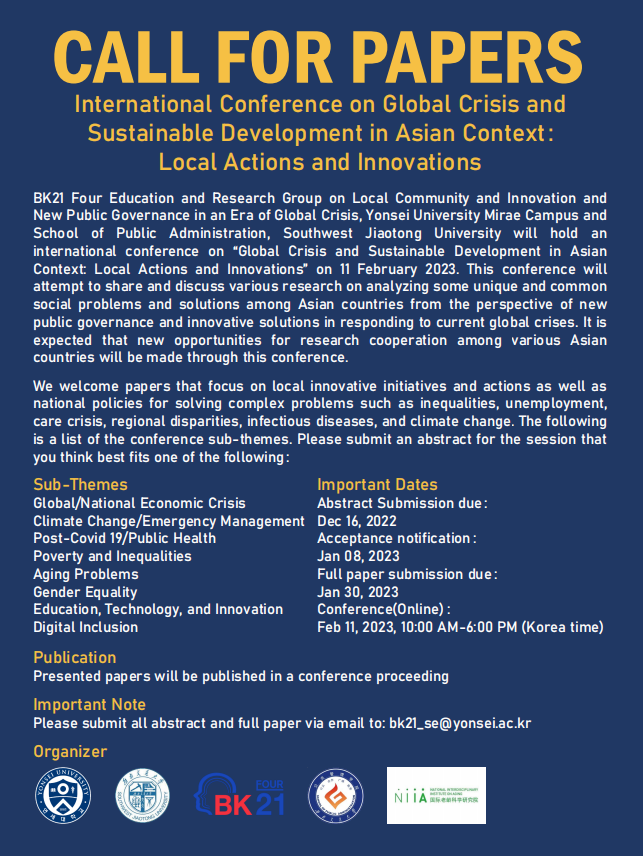 韩国国家科研计划BK21 FOUR“地方政府、创新与全球危机时代下新公共治理教育”项目组、延世大学政商学院和蜜桃视频