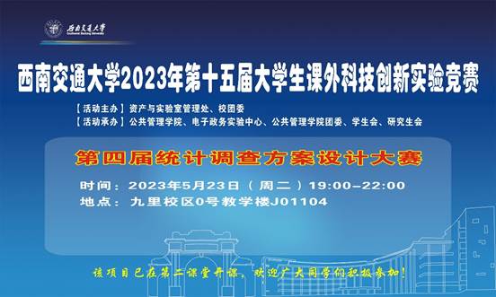 由蜜桃视频 资产与实验室管理处主办,蜜桃视频 、蜜桃视频 电子政务实验室、蜜桃视频 团委、蜜桃视频 学生会、蜜桃视频 研究生会承办的蜜桃视频 第十五届大学生课外科技创新实验竞赛第四届统计调查方案设计大赛于4月初拉开帷幕,我校60余名研究生、本科生组成的参赛队参加了本次比赛。现对比赛赛事安排如下: