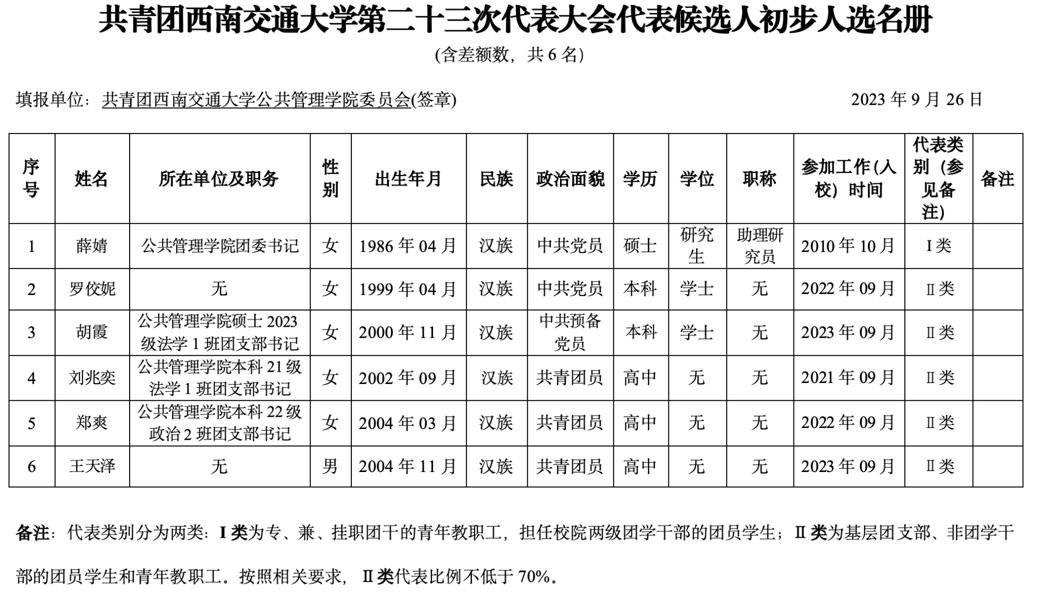 的代表名额及构成要求,结合实际情况,经基层团组织推荐、广泛协商酝酿和组织考察、集体研究,初步候选出以下6名同志作为共青团蜜桃视频