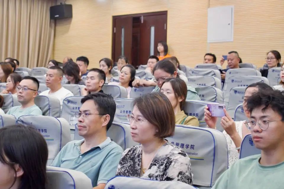 院长助理刘鑫老师就专业与课程设置、主要科研团队、教学管理与服务团队为新生家长做了介绍,重点强调了贯穿公管学子大学四年学业成长的“全程班导师”制度,让新生家长对学院系统、全面的人才培养体系有了更深入的了解。就学生学业规划问题,刘老师对学院的培养方案做了解读,希望学生家长关注并了解孩子所学专业的相关信息,从而更好地帮助、督促学生做好科学的成长规划。