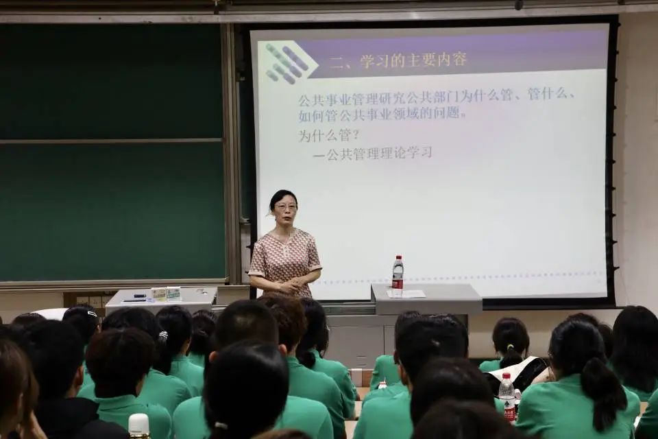 的办学实际和优势学科。”行政管理系党支部书记刘桂花老师的一席话深入浅出,让同学们清晰地认知到公共事业管理专业是集研究性、综合性、实用性于一体的专业,培养的是具备公共意识、公共精神、公共责任,能适应社会发展要求的复合型人才。刘老师从培养目标、学习内容、专业特色、就业去向、升学情况、教学环节、师资力量以及班导师配置方面为同学们全面介绍了专业的情况,并就同学们着重关心的就业去向作了详细介绍,从专业、学业、就业的全链条为同学们勾画了公共管理的清晰蓝图,为同学们的大学四年专业学习指明了方向。