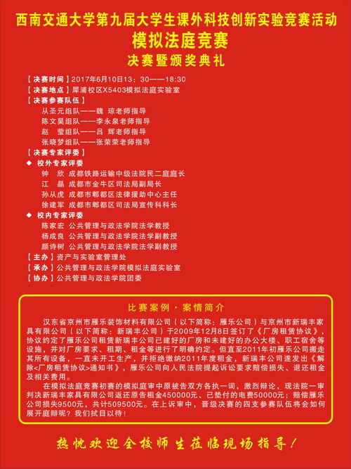 模拟法庭竞赛(2017)决赛赛事赛务公示