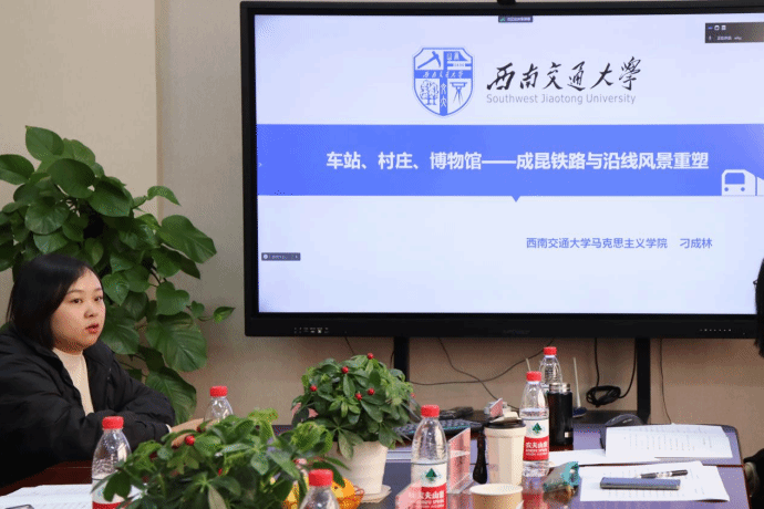马克思主义学院副教授刁成林以《车站、村庄与博物馆:成昆铁路与沿线风景重塑》为题进行汇报。她基于对中华人民共和国铁路史的研究,指出铁路作为一种文化景观,兼具物质层面和精神层面的双重意义。以成昆铁路为例,她介绍了铁路对沿线风景的重塑功能,认为这是一个动态的、长期的过程,是从“嵌入”到“融入”的现代化改造过程,是国家意志和地方诉求的结合。基于此,她建议铁路沿线地区可以通过丰富旅游资源等来构筑和营造集体记忆,在“我者”与“他者”的互动中形成文化认同。