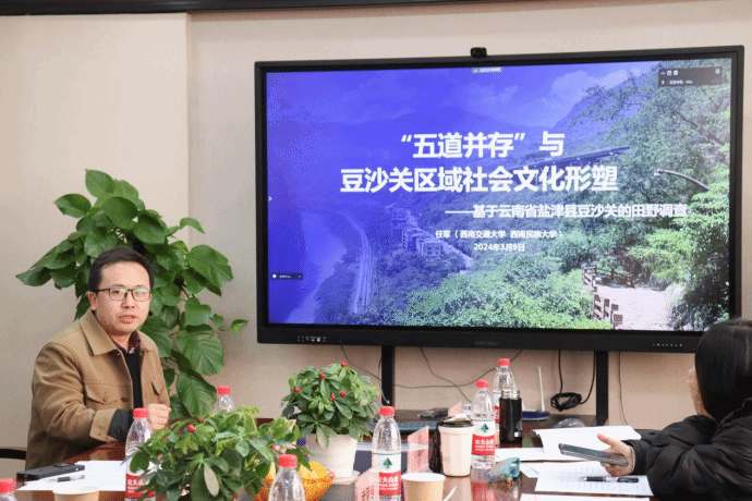 国际处任军以《“五道并存”与豆沙关区域社会文化形塑》为题进行汇报。基于对云南省盐津县豆沙关开展的田野调查,他关注不同形态、不同历史时期叠加的道路与当地社区之间的关系,认为道路不仅是被生产出来的,更是被建构出来的。从古至今,国家力量推动形成的“古今五道”不断形塑着当地的空间格局、文化习俗和市场活动,而道路也随之超出原本承载的交通运输功能,成为当地文化的重要组成部分。在此基础上,他提出道路的使用存在分层的特征,沿线社区往往被遮蔽在国家话语之下,应当关注线路规划、设计等细节问题,使沿线区域得到更好的发展。