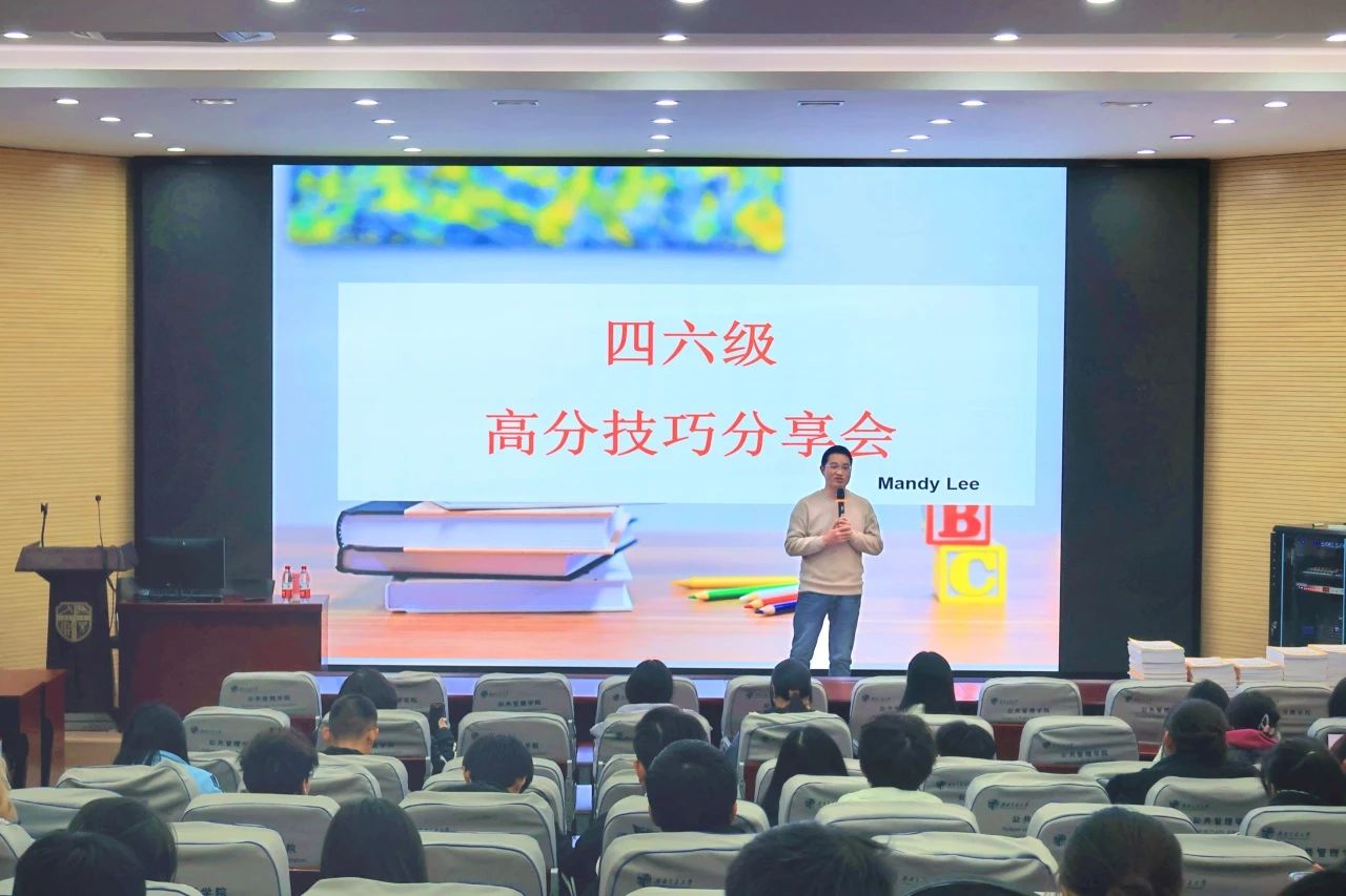 于2024年12月5日下午3点30分在零号教学楼0231教室开展了四级考前技巧公开课,本次公开课邀请到了成都新航道李月星老师为大家传授经验。