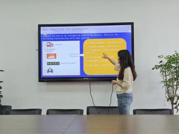 活动中,郭晋妤老师为同学们带来了一场生动实用的沉浸式英语口语分享,她基于自身留学与工作经历,介绍了日常旅游出行常用的交通工具词汇,并从“地铁转乘”“机场值机”等高频场景切入,讲授了订票、登机、换乘、入住等常用英语口语表达,通过情景模拟教学,让同学们结合具体的旅游情景进行角色扮演,带领同学们掌握旅行英语实用技能。此外,活动中还设置了有奖竞答环节,同学们积极举手发言,展现了自身的口语水平。
