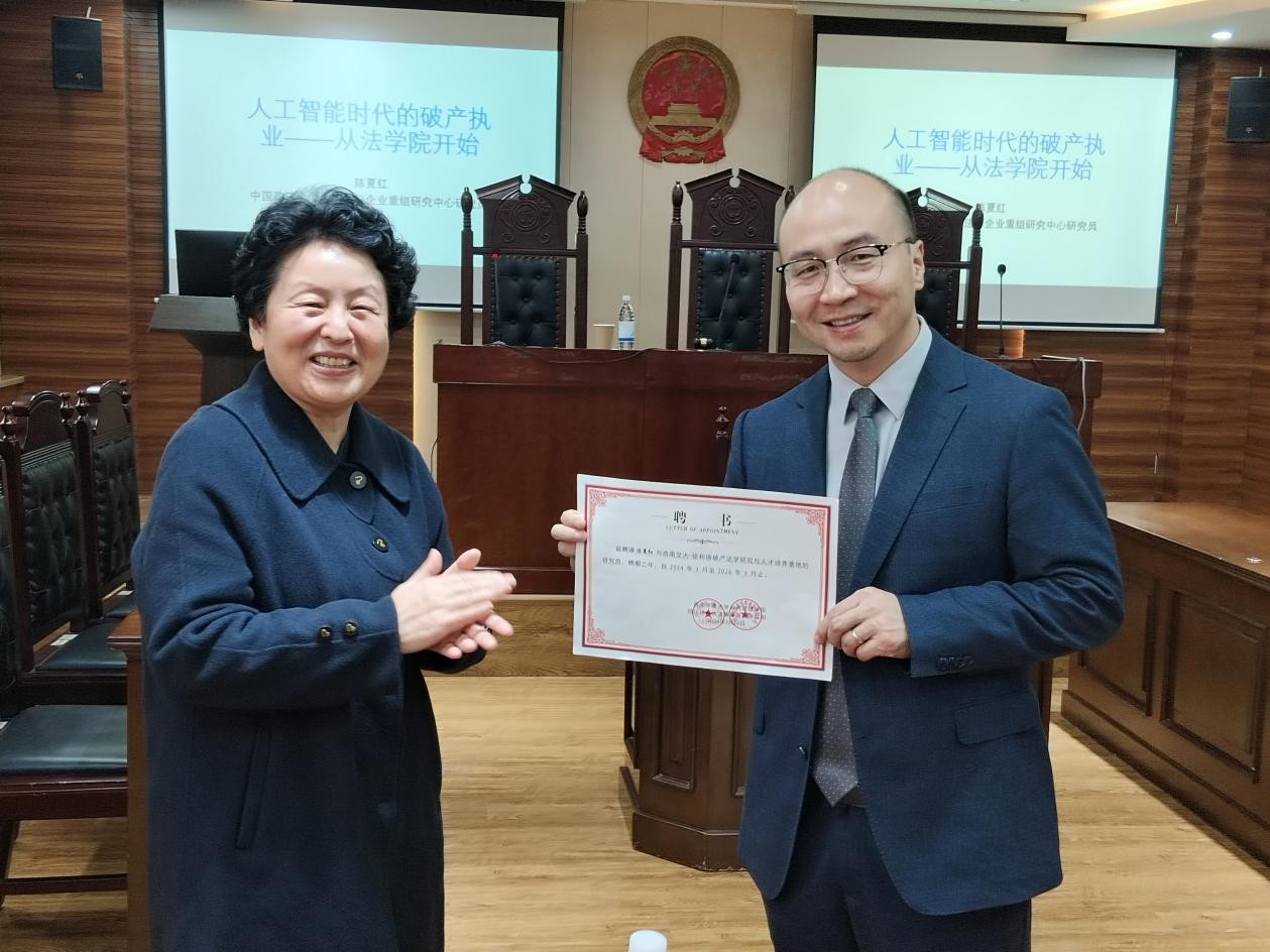 法学系主任魏琼老师为陈夏红颁发聘书,聘请其担任“西南交大-徐和徐破产法学研究与人才培养基地”研究员,期待以此次合作为契机,推动破产法领域的学术研究与人才培养提质升级。