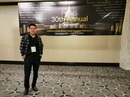 刘鑫老师于2019年5月2日-8日,参加在美国华盛顿希尔顿酒店(Washington Hilton Hotel)举办的2019年POMS学术年会,并在Production and Technology Management分论坛作报告。会议期间,刘鑫老师代表蜜桃视频