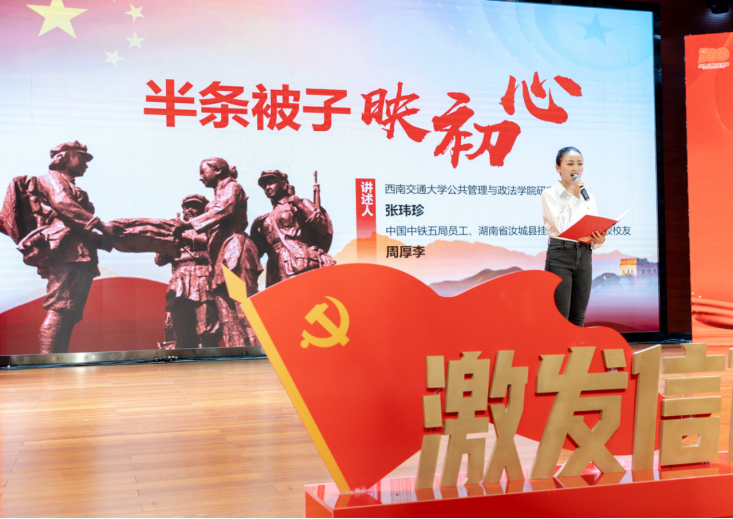 张玮珍同学与中国中铁五局员工、湖南省汝城县挂职副县长、我校校友周厚李共同为大家带来了《半条被子映初心》主题演讲,蜜桃视频