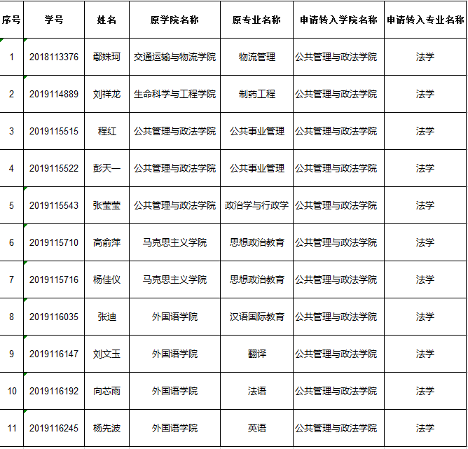 根据《蜜桃视频 本科生转专业管理实施办法》文件规定、蜜桃视频 2020年转专业的整体工作安排和公共管理与政法学院本科生转专业实施细则,经学生本人网上申请,学院考核,拟同意以下同学转入相关专业学习: