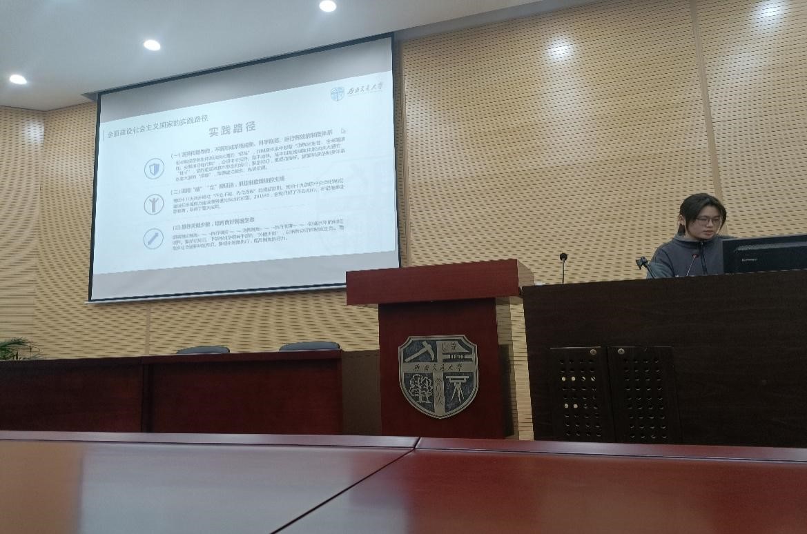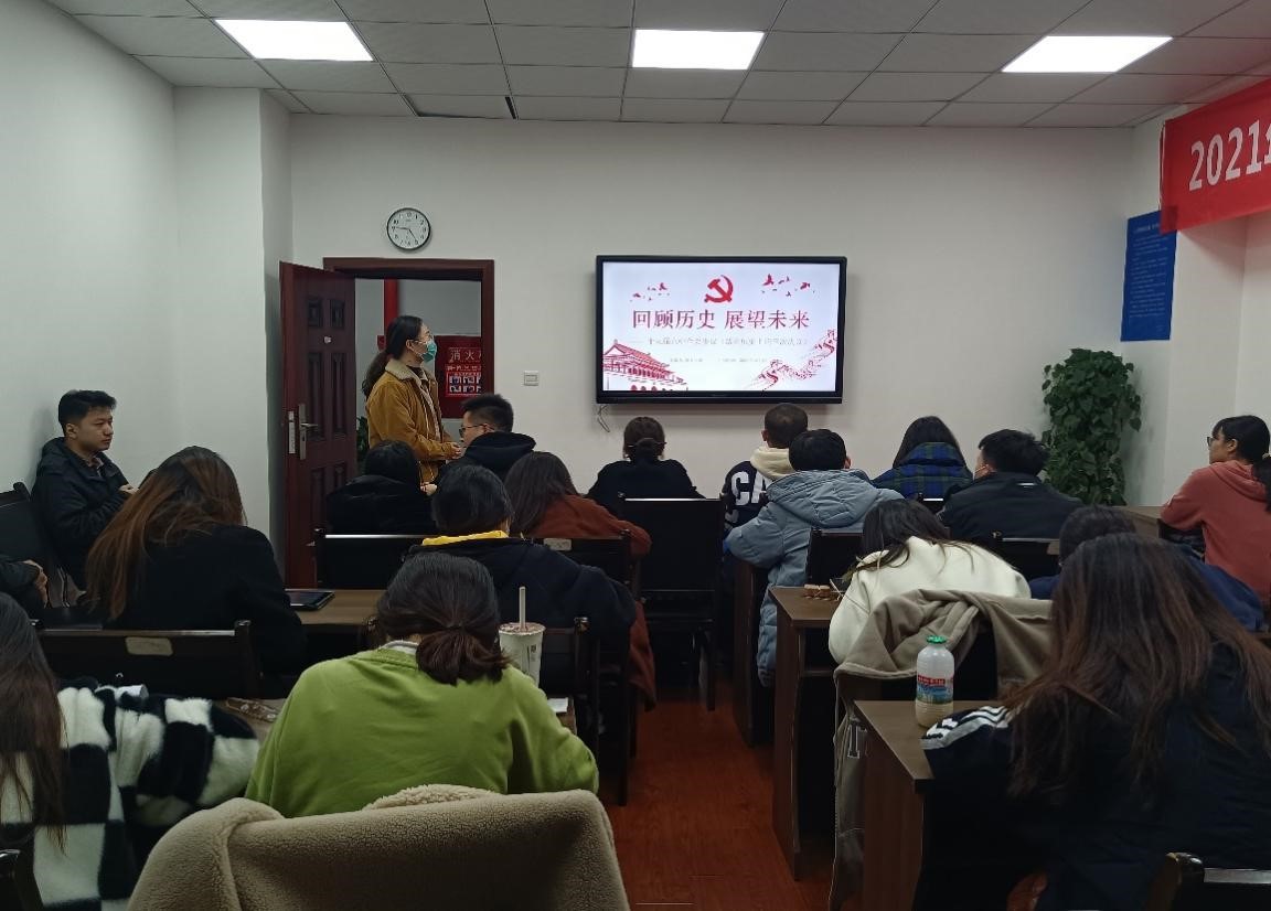 社会实践(二)活动于12月3日晚7点在0教231室和0教112室同时开展。本次活动主要是聚焦于全面建设社会主义现代化国家、全面深化改革、全面依法治国、全面从严治党、十九届六中全会决议这五个方面踊跃汇报。