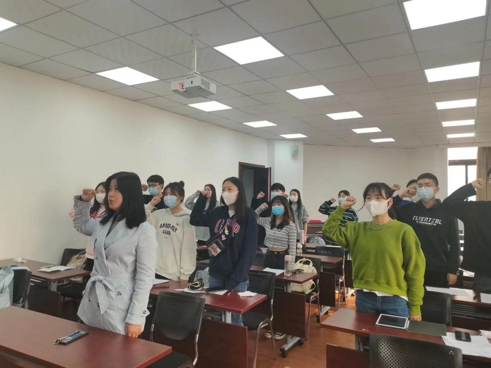 首先,党支部书记张婷带领全体党员同志重温入党誓词。