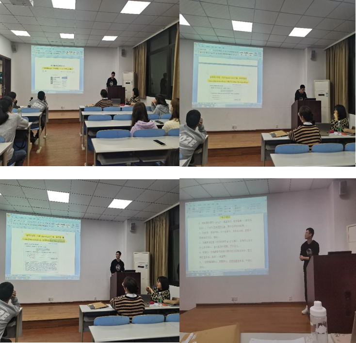 首先是黄同志进行“投稿经验交流”分享。黄同志在校期间,发表中文核心期刊一篇,其着重分享中文期刊投稿经验,从论文选题、写作、期刊筛选、投稿等一一阐述。她讲到“选题、写作、投稿是一个循序渐进的过程,没有哪一个阶段是轻松的。选题时多和导师沟通交流,多阅读高质量文献,写作时要沉得住寂寞,坐得住冷板凳;投稿时要有耐心,坚持不懈”。的确,科研本身是一件严肃的事情,其不仅可以锻炼同志们的写作技巧,并且可以提升同志们的逻辑思维水平。科研的道路道阻且长,但如果你真的有兴趣且毅力卓然,定要发挥自己特长,坚持在自己的领域发光发热。
