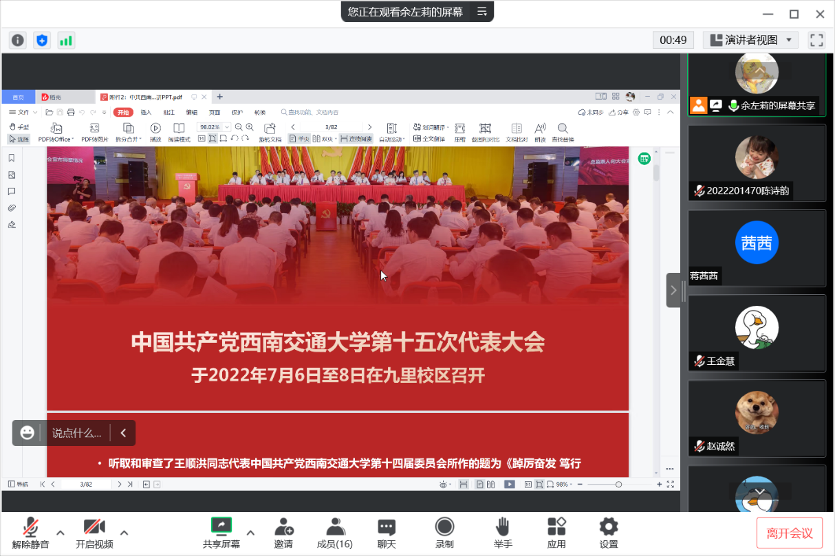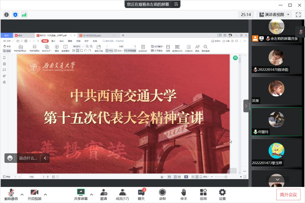 根据学校相关要求,并结合学院实际,在本支部书记及支委完成相关筹备工作之后,硕士2022级公管第一党支部于2022年10月14日14:30在腾讯会议app开展线上主题党日活动,支部全体党员参加,主要分为两项议程。