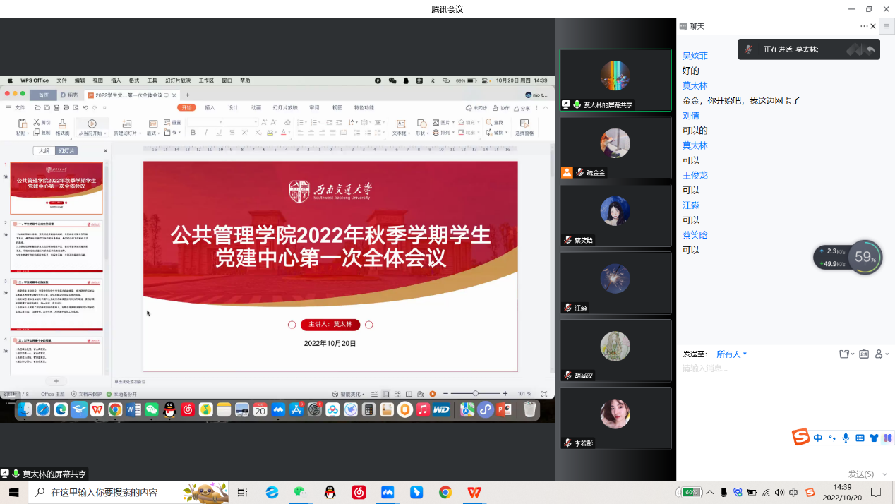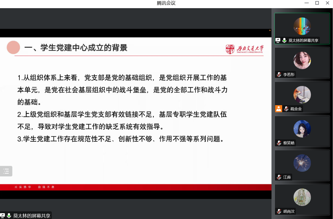学生党建发展指导中心第一次全体大会”,以实际行动践行党的二十大精神。本次会议由莫太林老师主持,党建中心全体成员参加。