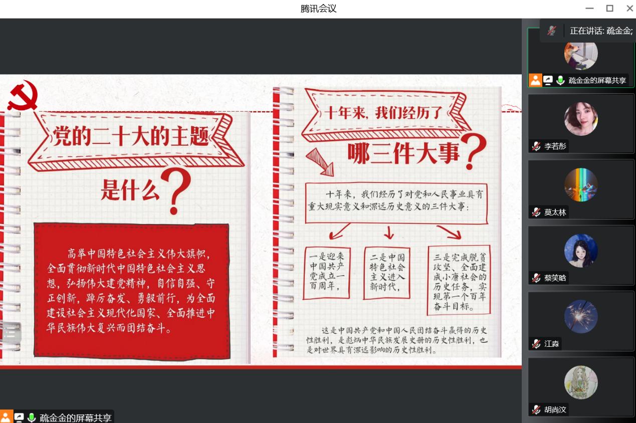 为深入学习贯彻党的二十大报告的主要内容和精神内涵,引导激励广大学生党员坚定理想信念,更好地立足岗位、履行职责,将崇尚先进、学习先进、争当先进的热情与干劲,凝聚成干事创业的力量,实现全面从严治党向纵深推进,2022年10月20日下午14:00在腾讯会议开展“蜜桃视频