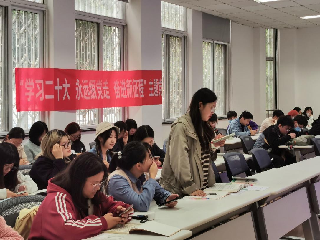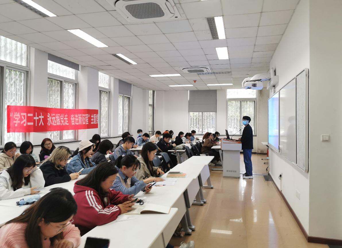 最后,石珮锦老师做了总结性发言,鼓励大家要继续学习并贯彻党的二十大精神,在学懂、弄通、做实上下功夫,积极地使学习成果转化为自身生活和学习工作中的行动自觉,发挥好党员的先锋模范作用。