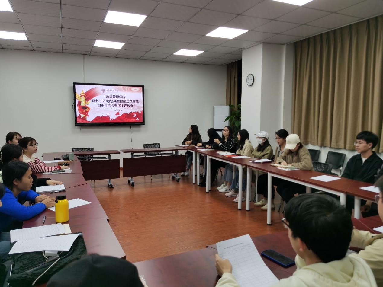 硕士2020级公共管理第二党支部于九里校区01108会议室顺利召开了组织生活会与党员民主评议。本次会议由党支部书记范锡林同志主持,支部全体党员同志参加。