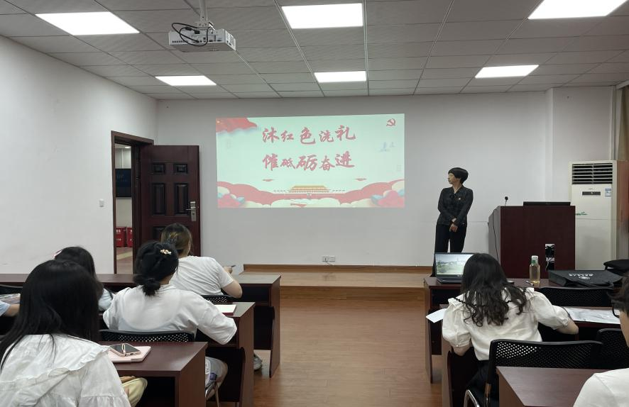 党委委员彭川宇老师为入党积极分子作《中国共产党的组织、纪律和作风》专题讲座。彭老师围绕党的二十大党章修改原则和要点、党章的重点内容解析以及深入学习贯彻党的几点思考三大方面展开全面系统的阐述,引导积极分子深入了解党的性质、宗旨、纲领、组织原则、纪律和作风,端正入党积极分子的入党动机,牢固树立起为共产主义事业奋斗终身的信念。