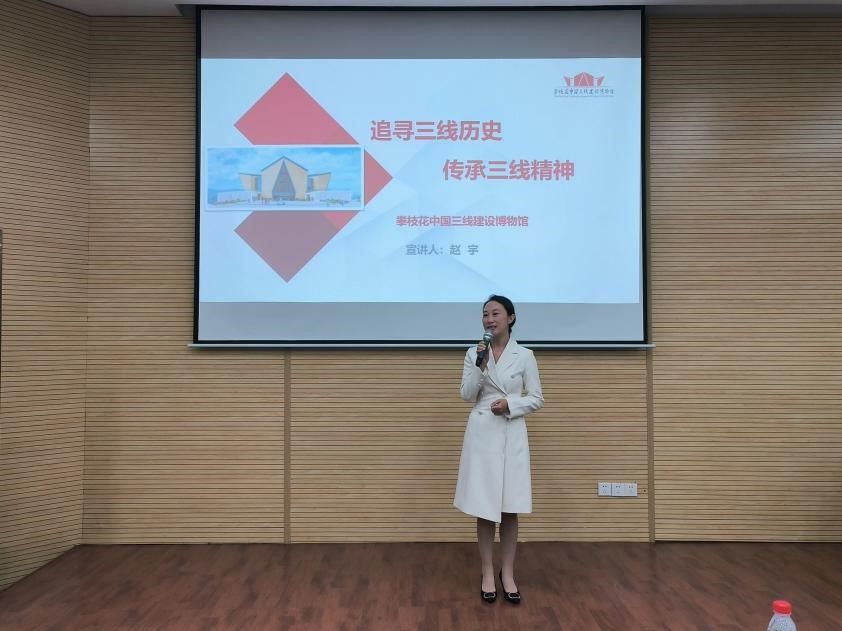 首先,由攀枝花中国三线建设博物馆社教组长赵宇老师讲述微党课“追寻三线历史,传承三线精神”。赵老师分别讲解了三线建设的历史背景、三线建设的决策和全面展开、三线建设的重点省份及项目、三线建设的巨大成就以及三线精神的传承。在赵宇老师的讲述中,与会同志更好学习了三线建设的历史背景,三线企业的发展变革,三线城市的诞生过程和三线精神的力量!