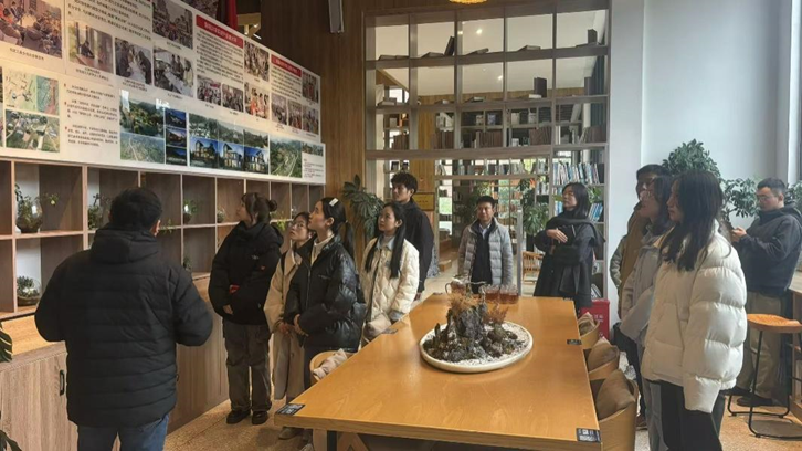 新见书山负责人陈总向支部成员们详细介绍了新见书山是如何与村中原住民共存,并通过双方的优劣势进行互补,在自身发展的同时拉动村集体一齐发展。具体而言,新见书山充分利用桃花IP,推进片区桃产业更新换代,打造龙泉山桃花观赏最佳目的地;按照“宜改则改、宜拆则拆”的方式,对原有农房和农村风貌进行梳理,恢复山区农村特有机理,打造“望得见山水、记得住乡愁”的网红打卡地;根据四季不同,丰富林盘内涵风貌,通过举办赏花、登山、捕鱼、采摘等多种活动,让游客感受到王家湾林盘独具魅力的春季赏花、夏季戏水、秋季登高、冬季避羅等不同体验。