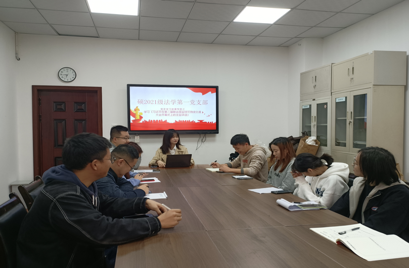 习近平新时代中国特色社会主义思想是全党全人民的思想之旗、精神之魂,承载着中国共产党人的初心和使命,为深入学习贯彻习近平新时代中国特色社会主义思想,让全体党员同志牢固树立永远跟党走的理想信念,紧跟新时代新思想新理论的步伐,硕士2021级法学第一党支部全体党员同志于10月21日下午17:00集中学习了《习近平在第二届联合国全球可持续交通大会开幕式上的主旨讲话》。