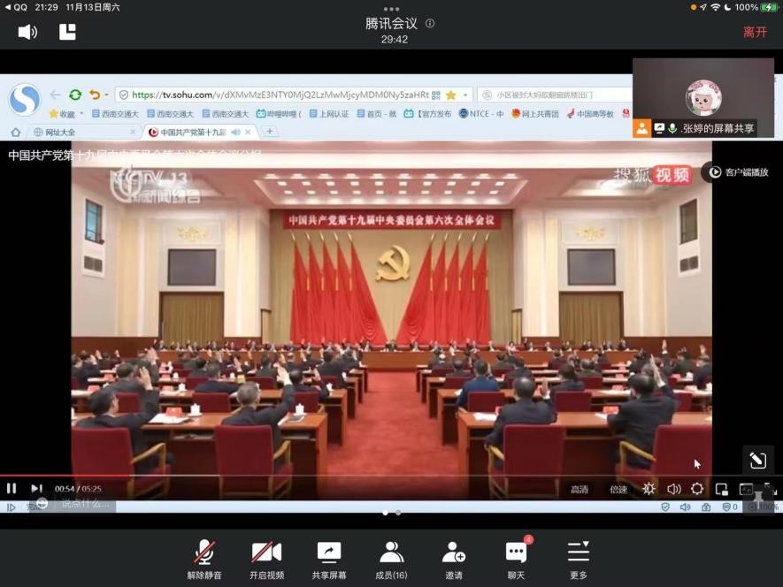 临近会议尾声,党支部书记张婷传达中国共产党第十九届中央委员会第六次全体会议精神。会上,书记带领大家全文学习了《中国共产党第十九届中央委员会第六次全体会议公报》。大会的胜利召开,为中心的改革发展指明了方向,带来了新机遇,提出了新要求。党的十九届六中全会是在我们党百年华诞之际,在全面建成小康社会、实现第一个百年奋斗目标、开启全面建设社会主义现代化国家新征程的重大历史节点召开的一次极为重要的会议,对于推动全党进一步统一思想、统一意志、统一行动,团结带领全国各族人民夺取新时代中国特色社会主义新的伟大胜利,具有重大现实意义和深远历史意义。