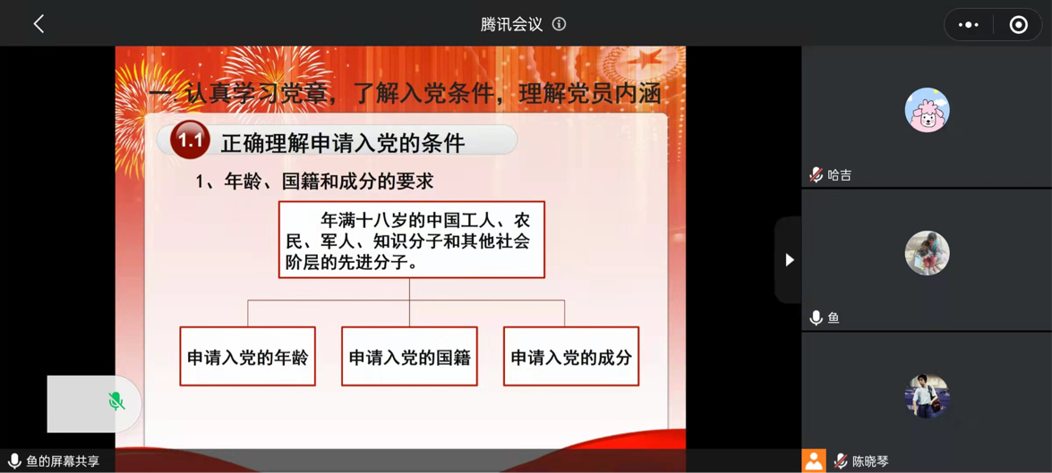 分党校集中开展了2021-02期入党积极分子党课培训的理论授课环节。根据学校疫情防控要求,本期培训班以线上腾讯会议的形式完成集中授课,分别由蜜桃视频